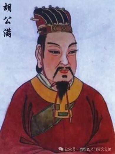 陈胡公名妫满,虞舜后裔。周武王灭商后,把他封到陈地,并把女儿大姬嫁给了他。妫满雄才大略,建陈国,筑陈城,兴百姓,造福民众。从西元前1028年到西元前707年,陈国历12任国君,共221年,这时期国内政治稳定,人民生活安定,陈国乃是诸侯国中的大国,雄居于十二大诸侯国之列。其后裔子孙多达2亿多人,其中陈姓全球总规模超1.3亿,以陈胡公为始姓的姓氏有陈、胡、田、袁、王、陆、夏、程等49个。妫满死在陈国,就葬在这里。周武王以国赐姓,称他为陈胡公,这就是陈姓的来历。